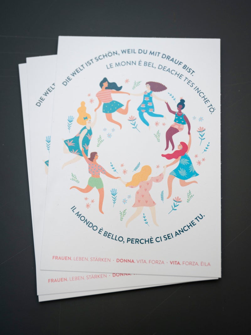 Azione congiunta in occasione della Giornata internazionale della donna. Cartoline per la campagna “Donna.Vita.Forza” con messaggi di incoraggiamento e consapevolezza.
