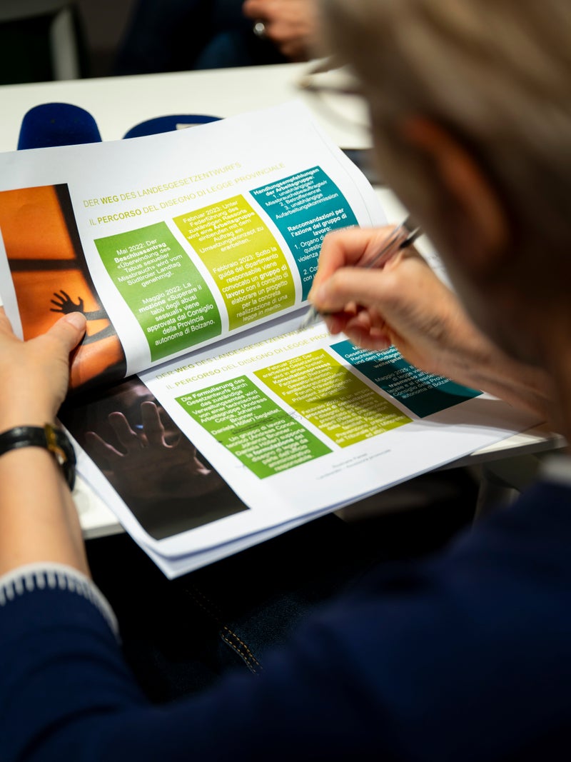 Il Consiglio provinciale ha approvato una mozione sul tema nel maggio del 2022. Da febbraio 2023 un gruppo di lavoro tecnico ha elaborato un progetto per la creazione di questo incarico e ha formulato alcune raccomandazioni operative. L'Ufficio per la Tutela dei minori e l'inclusione sociale ha formulato il testo preliminare, in stretta collaborazione con un gruppo di lavoro tecnico composto da Johanna Brunner, Andreas Conca e la garante per l'infanzia e l'adolescenza Daniela Höller. Da febbraio il testo è oggetto di un ampio processo di consultazione con esperti del settore. Brunner e Conca hanno sottolineato che si tratta soprattutto di dare visibilità al tema e di offrire sostegno ed aiuto alle persone colpite. “È necessaria una migliore comprensione di cosa significano gli abusi e la violenza sessuale per il nostro territorio e la nostra società. Questo obiettivo può essere raggiunto con una legge provinciale: per noi era importante coinvolgere le persone colpite, basandoci sulla loro esperienza vissuta”, ha affermato Johanna Brunner. “La legge provinciale è un segnale di fiducia rispetto all’assunzione su questo tema di una responsabilità sociale”, ha sottolineato Andreas Conca, rimarcando l'importanza di dare voce alle vittime.