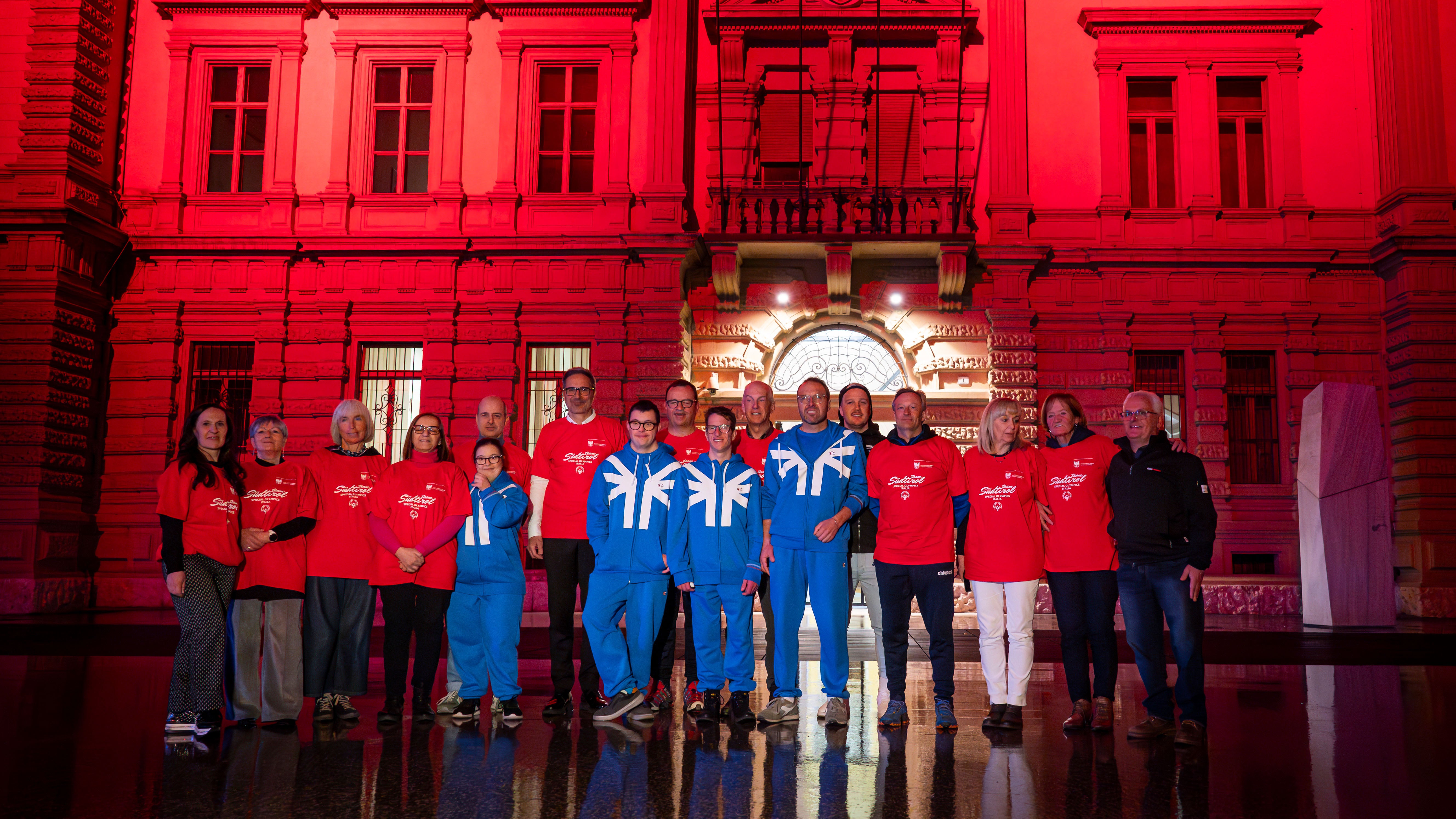 Al termine del saluto, Kompatscher e la delegazione degli Special Olympics hanno raggiunto piazza Silvius Magnago per assistere alla suggestiva illuminazione di Palazzo Widmann, che si è acceso di rosso, colore simbolo di Special Olympics. Un momento di grande impatto simbolico, che ha voluto rappresentare la vicinanza della Provincia di Bolzano nei confronti di questi grandi giovani esempi di sport e vita, pronti a coronare il loro sogno olimpico.