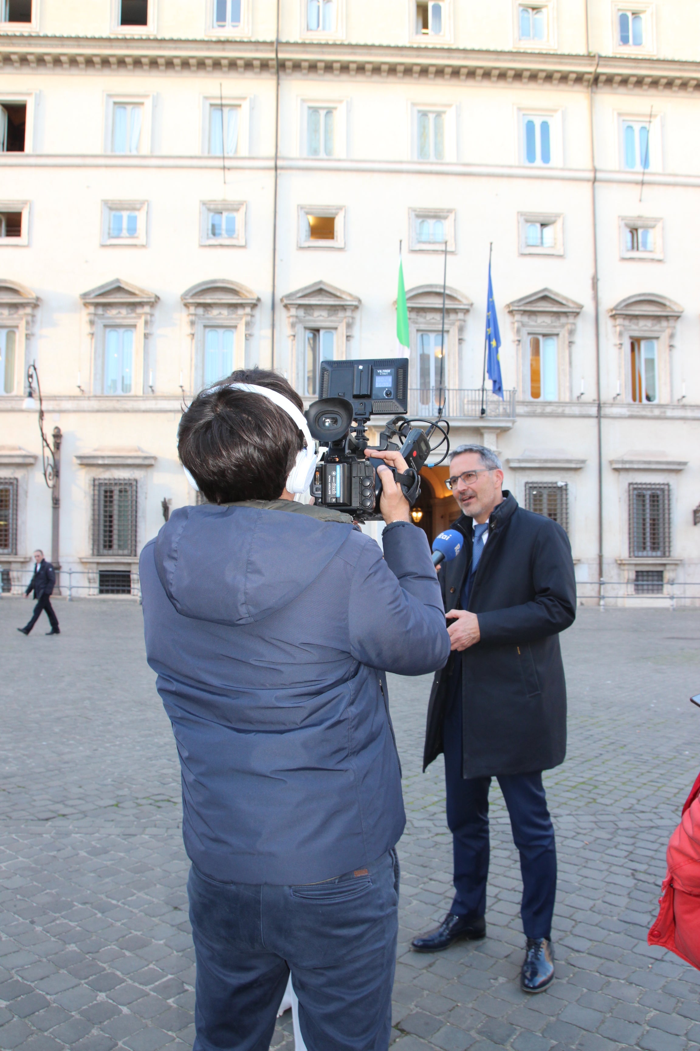 - Il presidente Kompatscher intervistato davanti a Palazzo Chigi. (Foto: ASP/Katharina Tasser) » [IMG 2 MB]