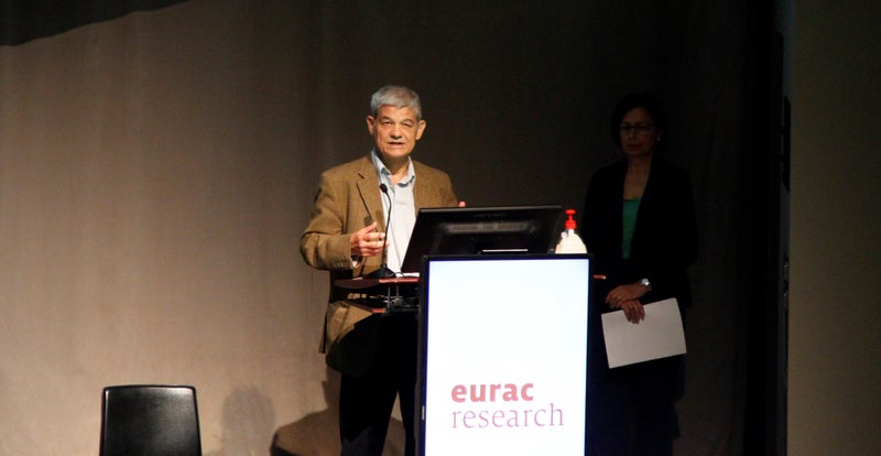 - Il direttore dell'Istituto di Public management dell’ricerca Eurac, Kurt Promberger, nel corso del suo intervento (Foto: ASP/Hannes Wisthaler) » [IMG 819 kB]