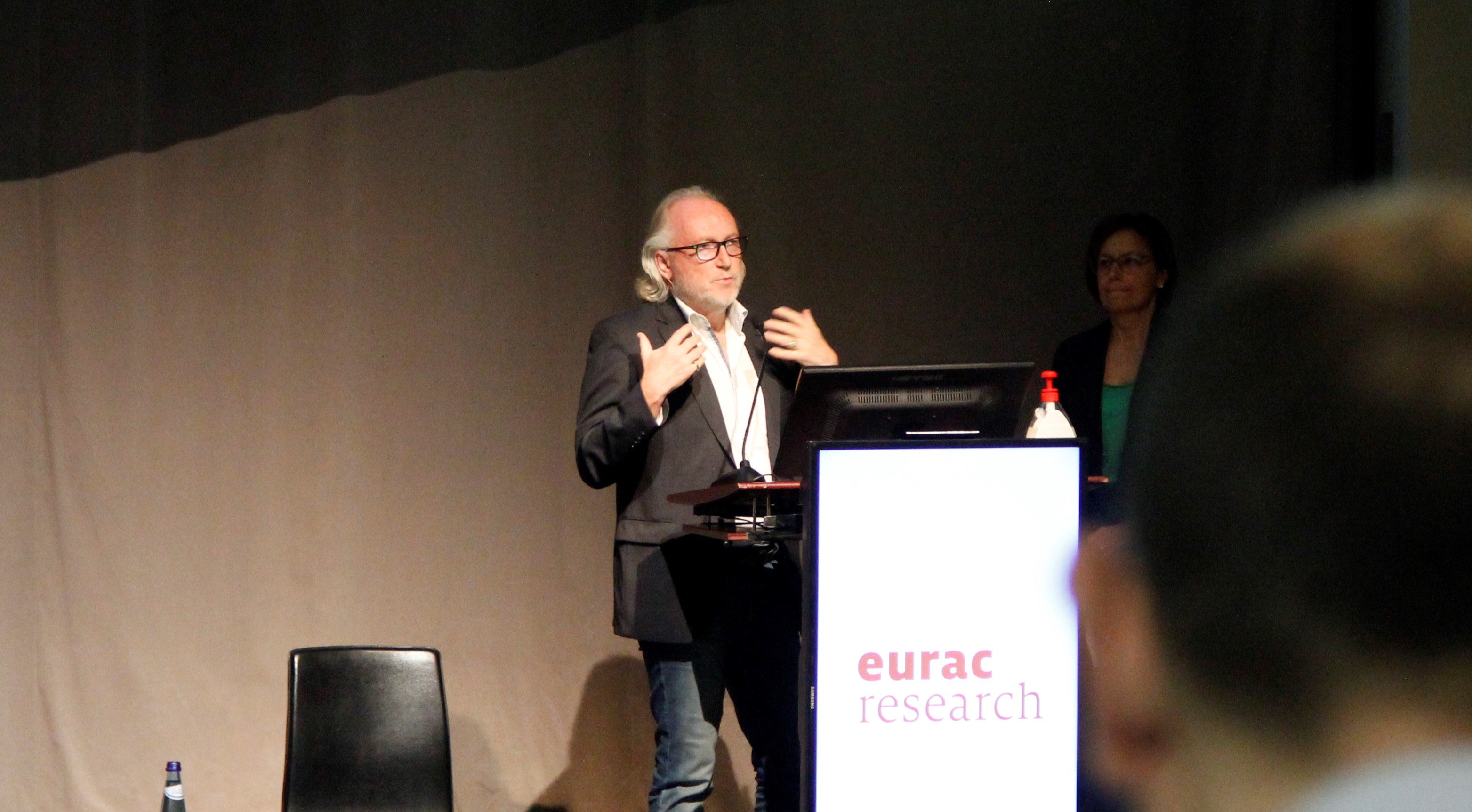 - Karl Gudauner, della Società di formazione e ricerca Chiron, el corso del suo intervento (Foto: ASP/Hannes Wisthaler) » [IMG 1 MB]